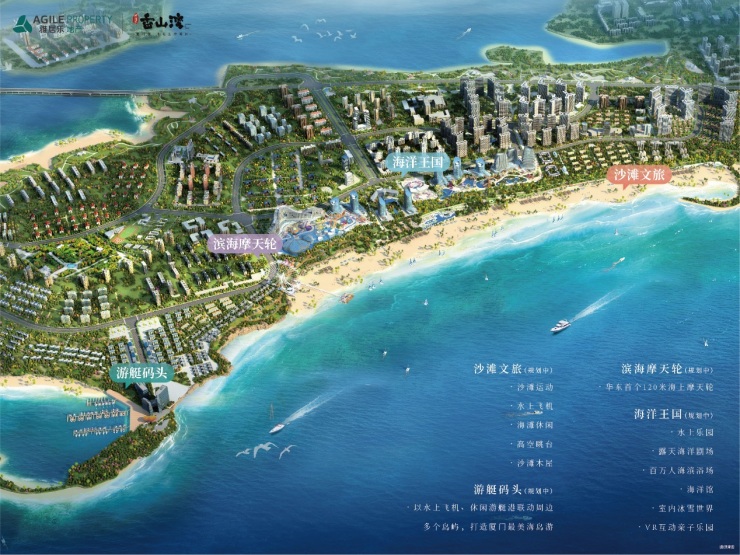 未來香山灣還將打造成為萬畝濱海度假灣區,500億投資規劃打造海洋王國、水上樂園、五星級酒店群、濱海摩天輪、濱海奧特萊斯等豐盛的海居度假配套,實現更舒服的濱海度假生活。