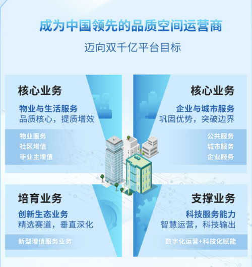 未來,集團將重點關注家政、幼托、養老等國家政策鼓勵、有龐大潛在需求的“物業服務+生活服務”產業,以專業化產品運營思維,重點輸出服務價值,打造創新增值服務的專業服務能力。同時,集團將在商企服務需求端深挖業務潛力,瞄準團膳、通勤、個性化企業服務等高關聯性增值服務領域,不斷延伸及突破服務邊界,盡早補強業務專業能力。
