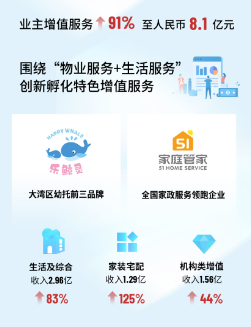 雅生活集團憑借著擁有百萬社區業主及商企客戶的服務規模,將優選增值服務發展賽道,以多元合作方式培育新業務。